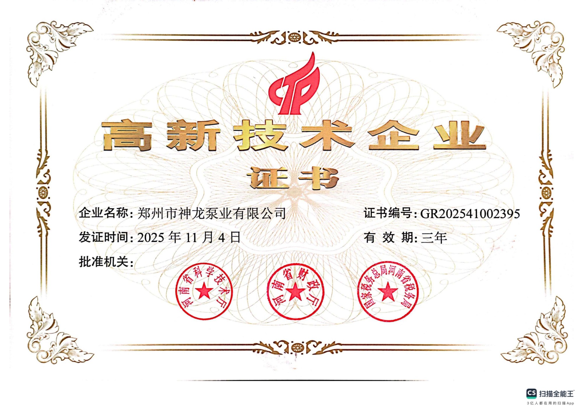 高新技術(shù)企業(yè)證書(shū)